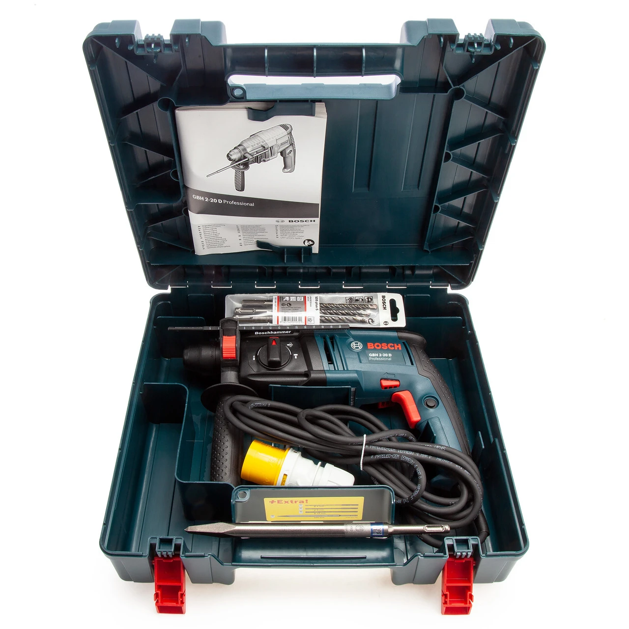 Bosch GBH220D 2 kg 3 Function SDS-Plus Rotary Hammer In Carry Case with 3 x Drill Bits & 1 x Pointed Chisel