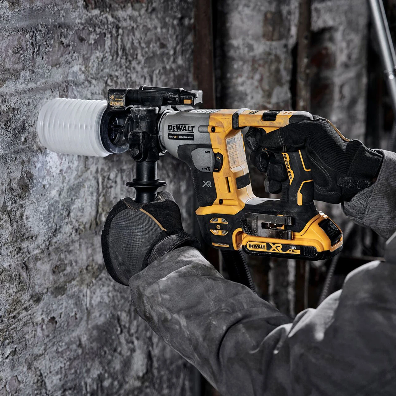 A compact cordless SDS Plus drill with an 18V brushless motor for extreme runtime and reduced maintenance