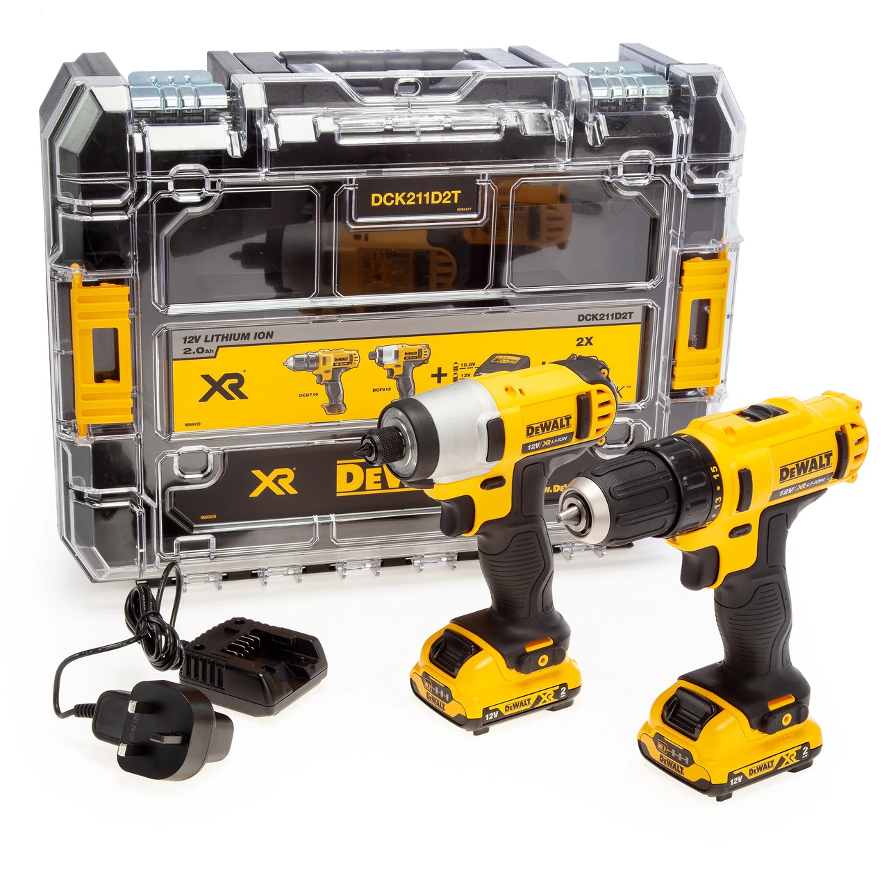 Dewalt DCK211D2T 12 Volt Cordless Lithium-Ion Compact Drill Driver and Impact Driver Twin Pack complete with 2 x 2.0 Ah Li-ion batteries, charger and TStak Kitbox