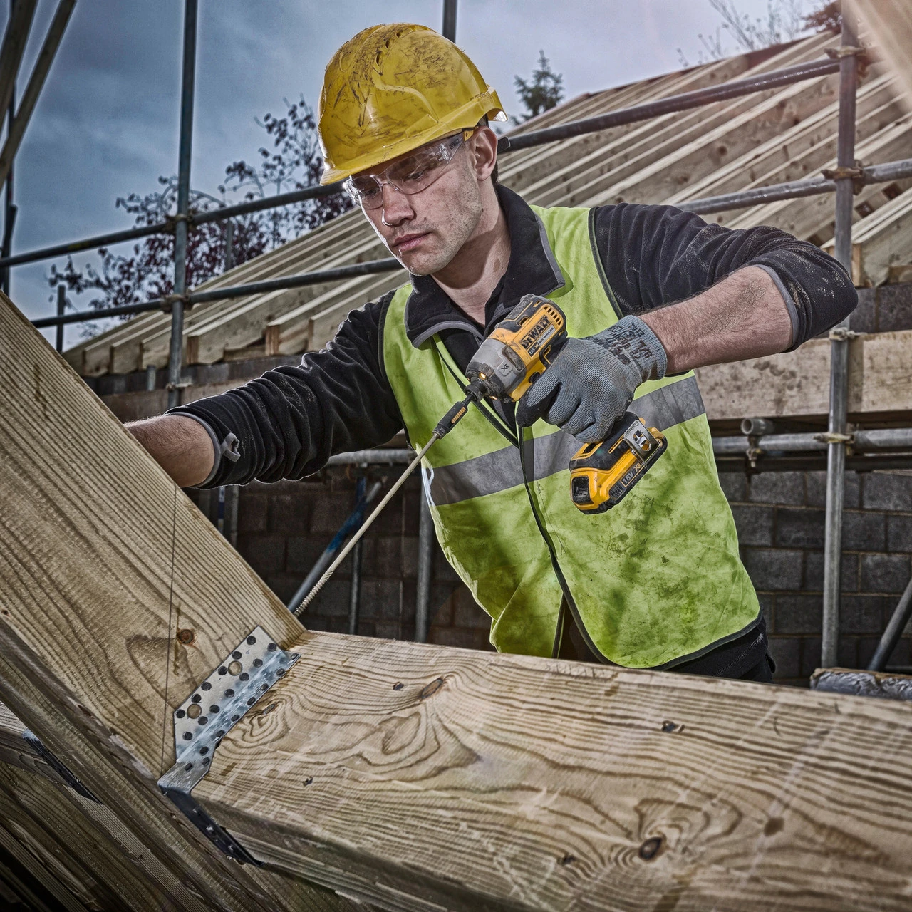 The Dewalt DCK266P2LR 18V XR Twin Pack is Lanyard Ready for protection during scaffolding work, to protect both tools and workers from falls
