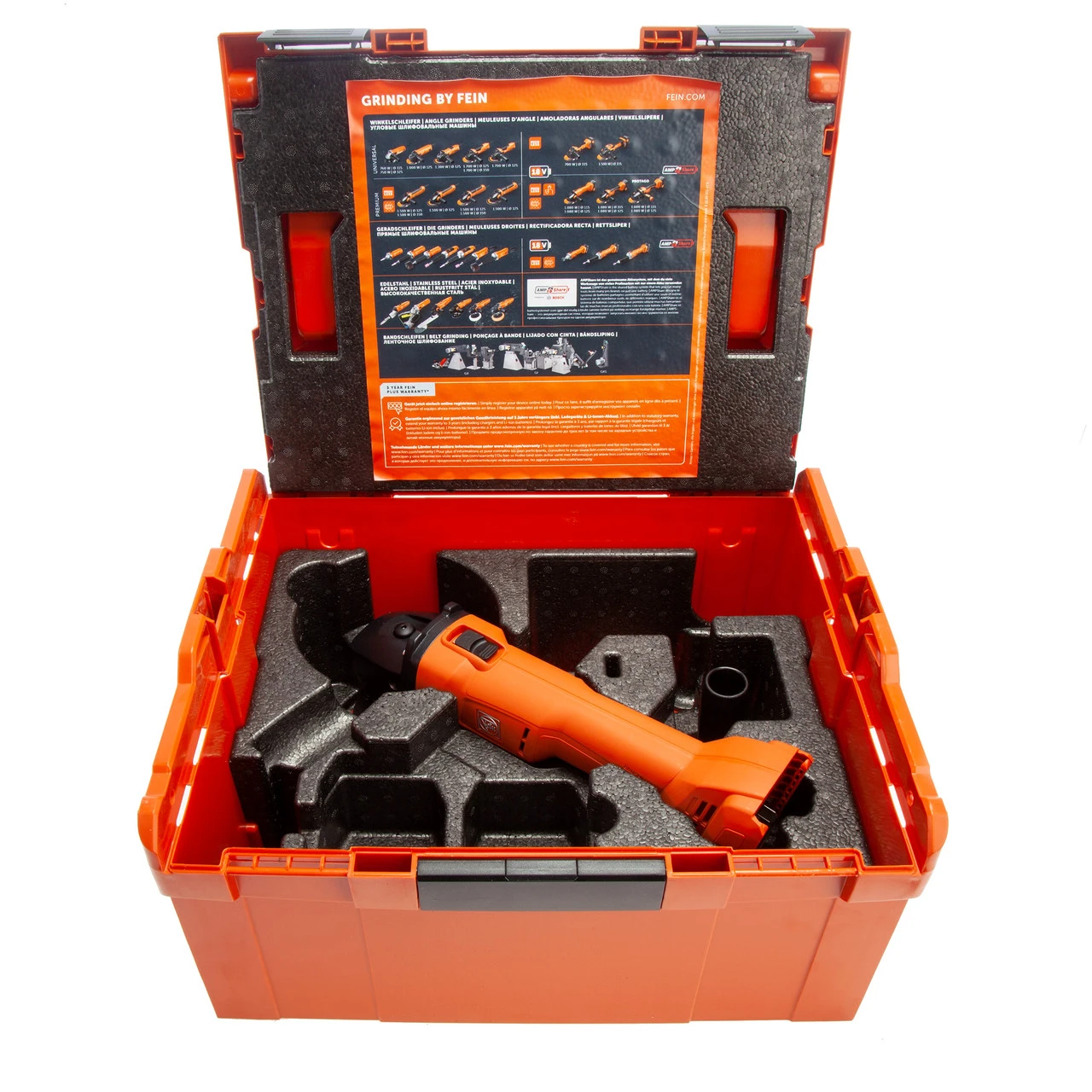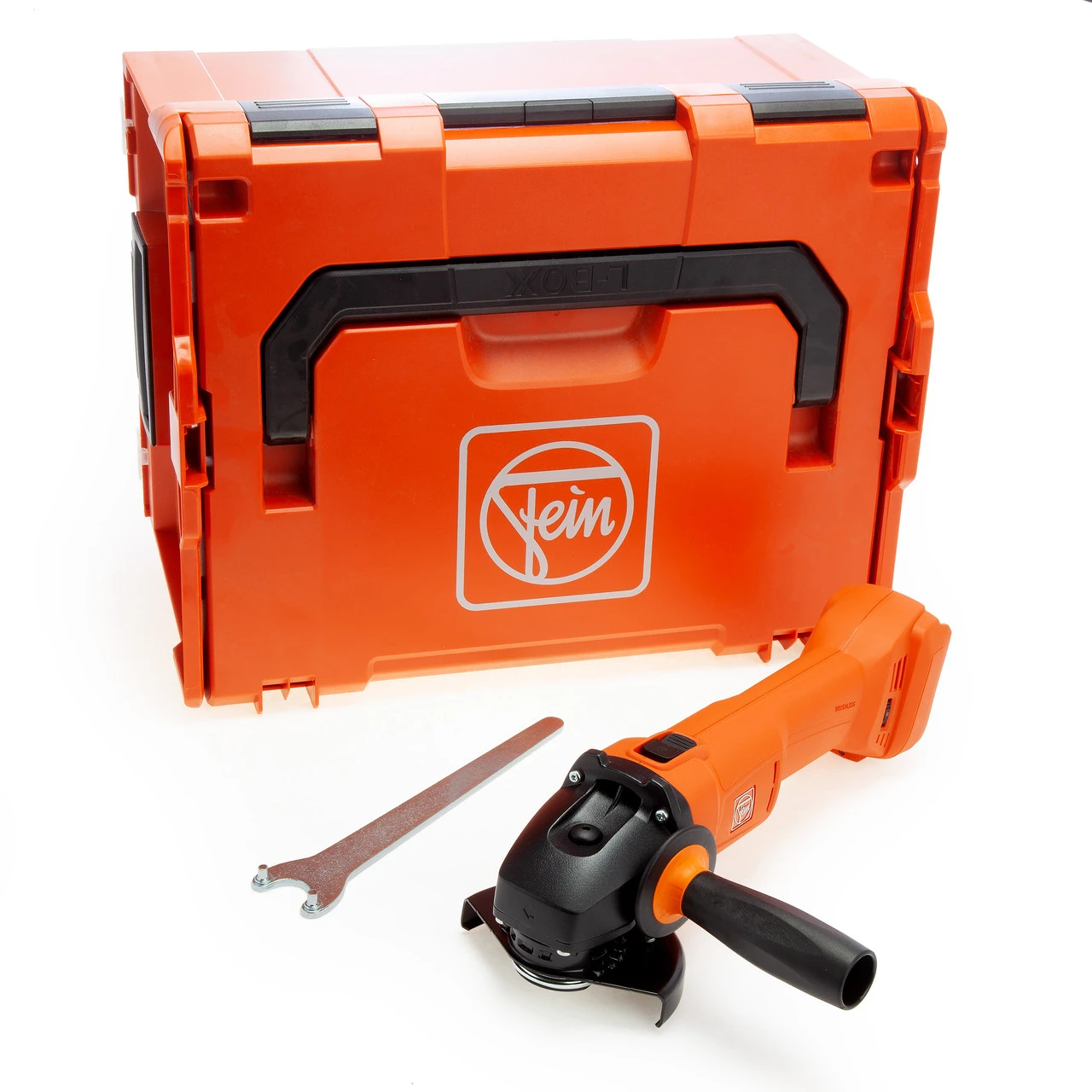 The Fein CCG 18-115-10 AS is dust-resistant and powerful, Compact Cordless Angle Grinder for effective cutting, grinding and deburring work in assembly jobs. Guarantees very long life with the next generation of brushless FEIN PowerDrive motors. Totally closed motor housing protects the motor from aggressive ceramic and mineral dusts.Ideal for every application. Optimum speeds, matched to a large number of abrasive materials and other materials using the infinitely variable, electronic speed preselection. Sold as a Body Only machine without a battery or charger in an L-Boxx.