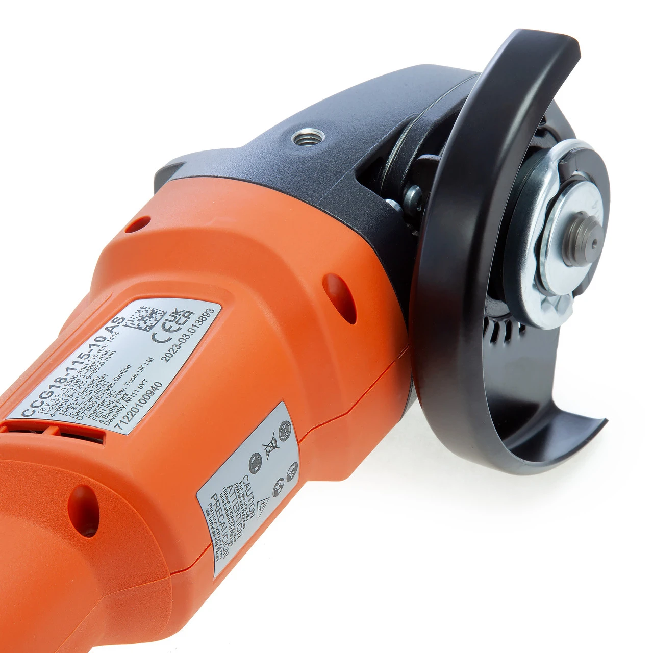 The Fein CCG 18-115-10 AS 18V AMPShare 115mm Angle Grinder delivers the same power as an equivalent corded 1080 W angle grinder