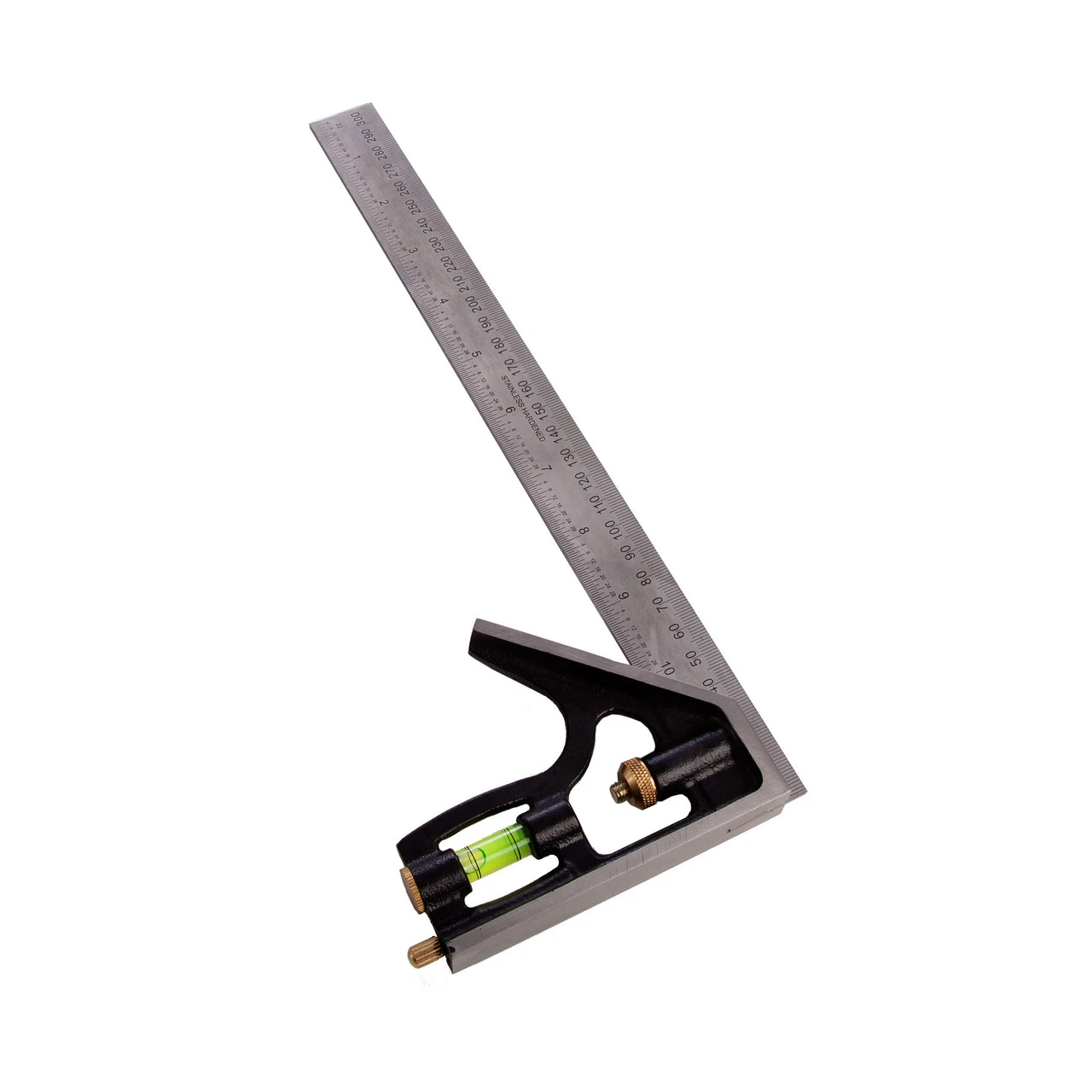 The Fisher FB1953ME is a multi-purpose combination square has a heavy-duty cast iron stock with ground faces. It can be used as an outside or inside try square, a mitre square or depth and marking gauge. The vial and stock give level 45 degree and plumb reading. A separate scriber is also fitted.