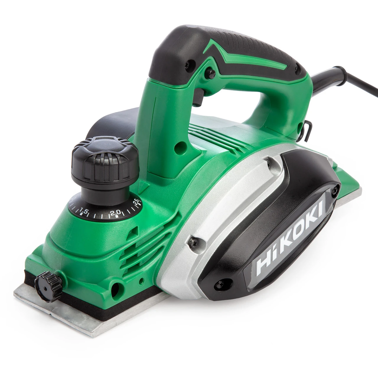 The HiKOKI P20SFJ2Z is a 110V Planer with a cutting width of 82mm. The machine has a maximum cutting depth of 2.6mm and has an aluminium base with a V-groove for chamfering. A lightweight at only 2.5kg and comfortable to operate with a soft-grip handle. Sold in 110V and 240V (P20SFJ1Z) models.
