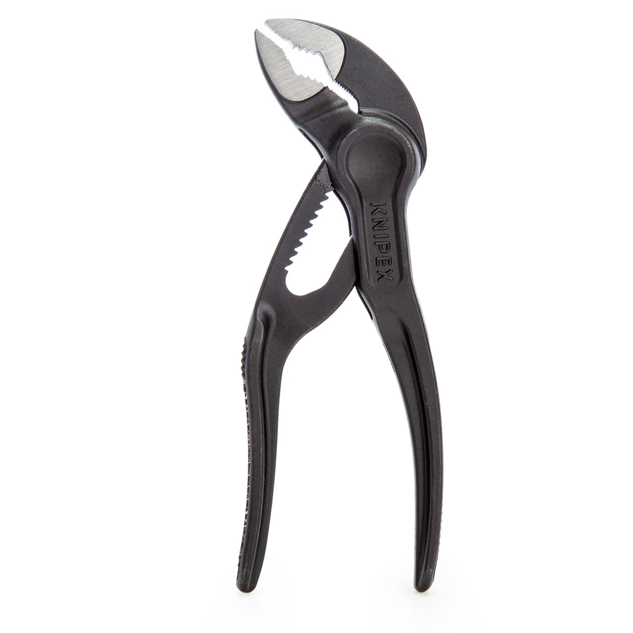 The Knipex 87 00 100 BK Cobra XS Water Pump Pliers have a gripping capacity Ø 28 mm, width across flats up to 24 mm – at only 100 mm length
