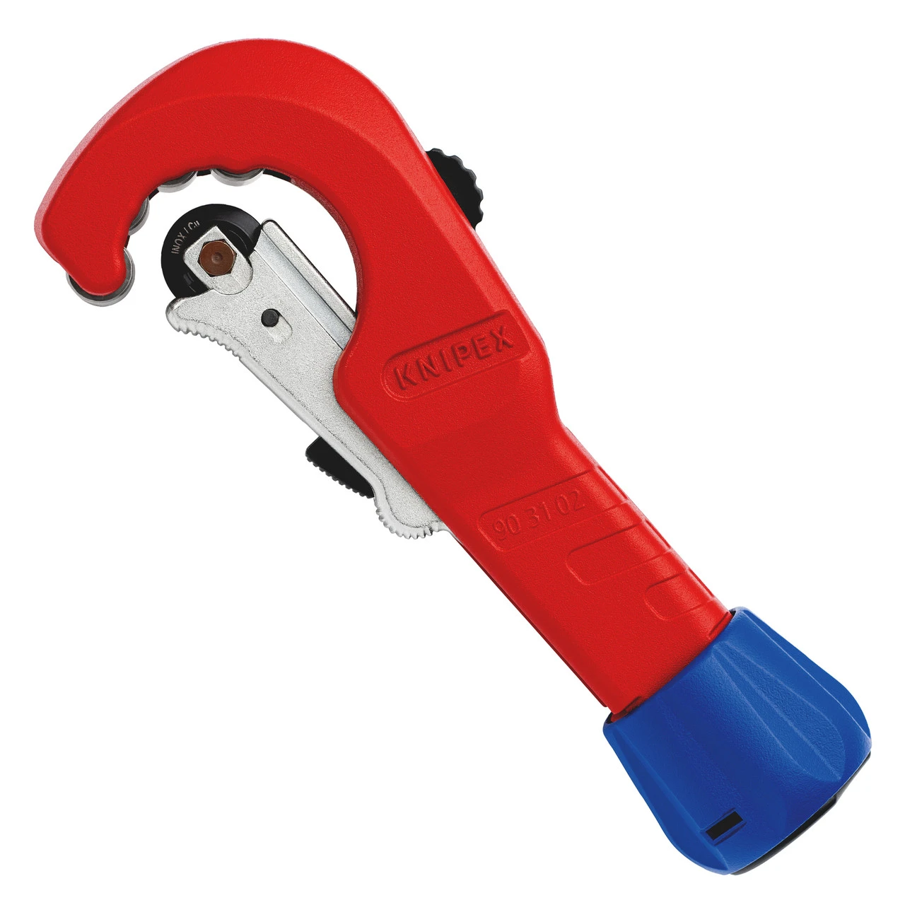 The Knipex 903102BK TubiX Pipe Cutter enables comfortable, easy cutting due to high-quality needle bearings in the cutting wheel and guide rolls