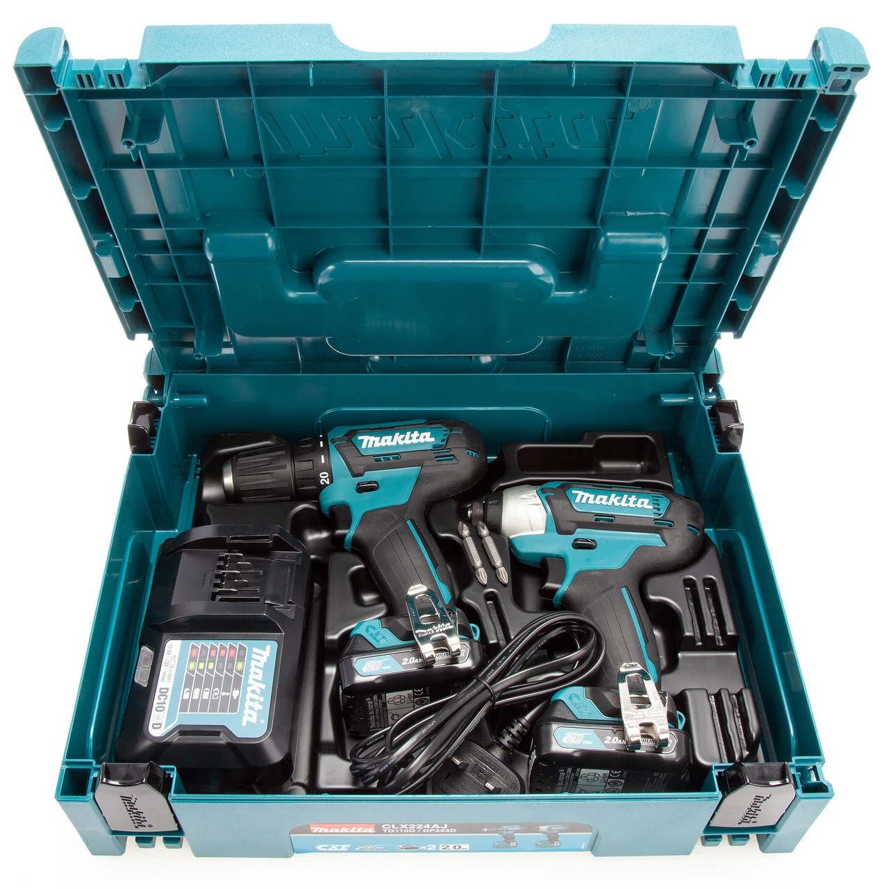 The Makita CLX224AJ twin pack consists of the TD110D impact driver and DF333D drill driver. The TD110D is one of the first new 10.8V platform models. It features increased motor power for higher application speed and max tightening torque. The DF333D has been developed based on DF331D. It is extremely powerful thanks to its 2 mechanical gears and improved durability under load. Both feature an LED job light for maximum precision even in darker areas.