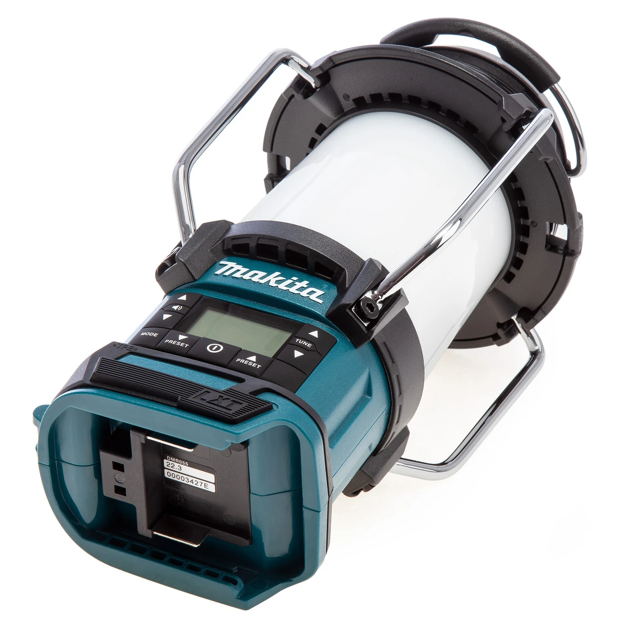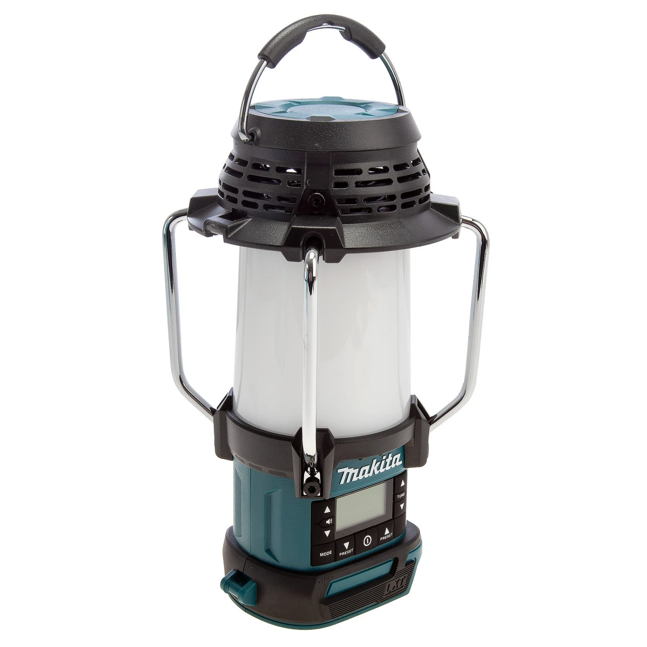 The Makita DMR055 is a 2-in-1 cordless radio and light. The radio is AM/FM with an 87.50 – 108 Mhz FM coverage and 522 – 1,710 kHz AM coverage, 9 presets and a large digital LCD display. It has a hanging loop for attaching to tents and other areas. The light is slow lighting up and provides 360Ëš light coverage and 3 light settings. You can achieve up to 12 hours of listening time and lighting on a full 5.0Ah battery charge. Sold as a without battery or charger in a cardboard box.