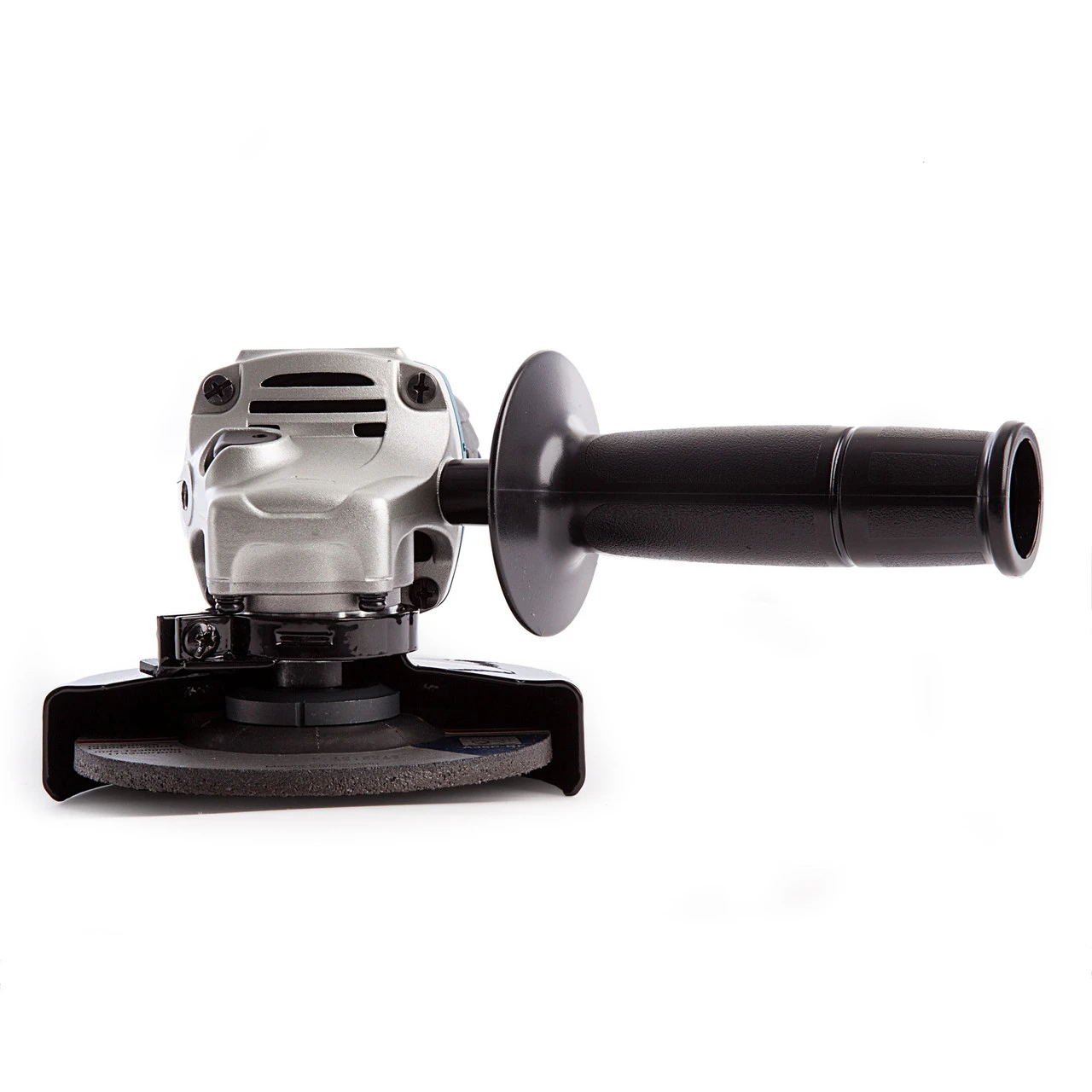 A small Angle Grinder with an ergonomic barrel grip. The GA4530R is the successor to the proven GA4530, the ‘R’ grinders have additional soft start and anti-restart functions. Regardless of whether the user grips the motor housing or rear cover, the slim barrel grip with a diameter of 179mm fits any user’s palm and fingers perfectly. It provides easy and comfortable handling while minimizing hand fatigue and pain. The side grip is angled at 20 degrees for manoeuvrability and the best performance. The GA4530 is fitted with a high quality motor with excellent heat resistance. It has built in dust protection with dust proof ball bearings, the motor field is coated with protective powder varnish. Two labyrinth rings seal the bearings and machine bevelled gears from dust and dirt. People who bought this say: “Easy to set up and use” “Light, easy to hold for any length of time and it’s powerful enough for most household jobs. Sold in a cardboard box.