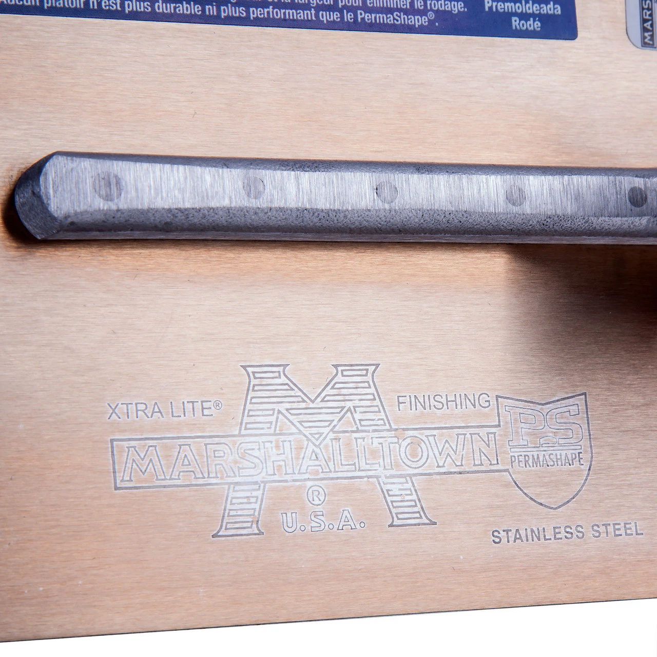 The Marshalltown MPB145GDH plastering trowel features a pre-worn shape that eliminates line and ripple marks right from the start. Its PermaShape guarantees that it will maintain its original broken-in shape even after continued use. It is made from the highest grade stainless steel, properly shaped and tempered to a golden finish making it lightweight yet very strong. The DuraSoft handle provides a soft feel, reduces fatigue, and offers excellent durability.
