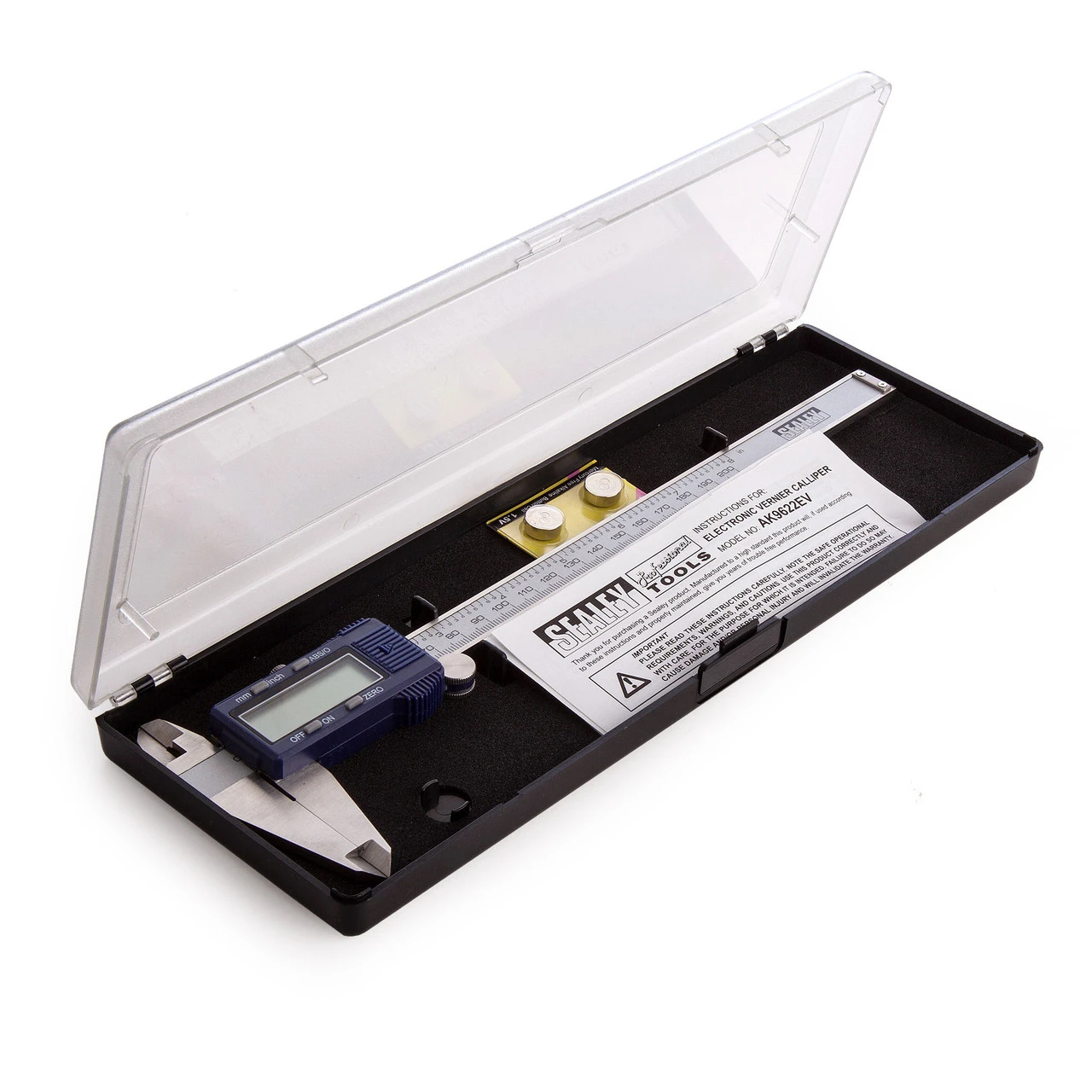 The Sealey AK9622EV is a Digital Vernier Caliper manufactured from hardened and tempered stainless steel with a satin finish. The AK9622EV allows for both Metric and Imperial calibration with conversion between the two. Zero setting control allows for comparative measurement
