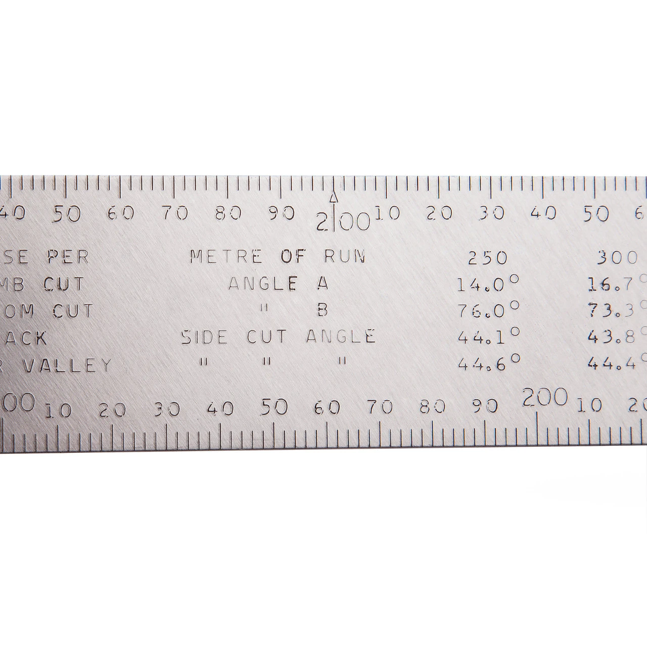 The Stanley 1-45-530 is a high quality, heavy-duty roofing square. It has a reverse reading scale and crisply embossed graduations for easy reading and features a protective lacquer coating for rust resistance.