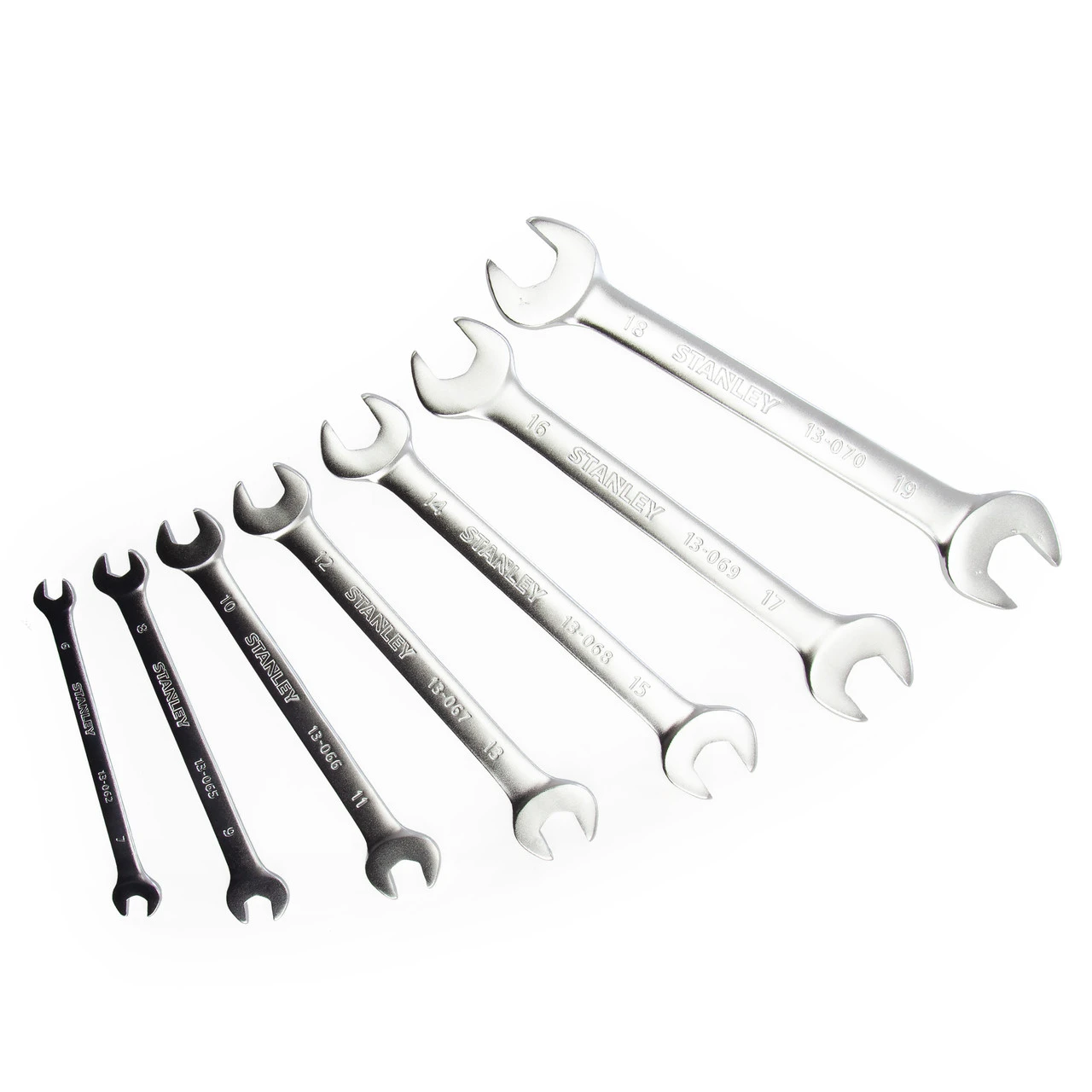 The Stanley FMMT82901-0 is a 7 piece Open End Double Fork Key Set with bits ranging from 6×7-18x19mm. The double wrench open at both ends can be angled at 15° for optimal access into tight, hard to reach areas making light work of tightening and loosening. The anti slip design and corrosion resistant construction make this set extremely durable and long lasting.